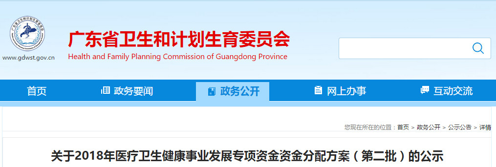 6月26日,广东省卫计委发布《关于2018年医疗卫生健康事业发展专项资金资金分配方案(第二批)的公示》(以下简称《公示》)。